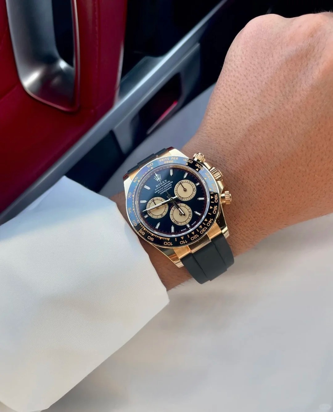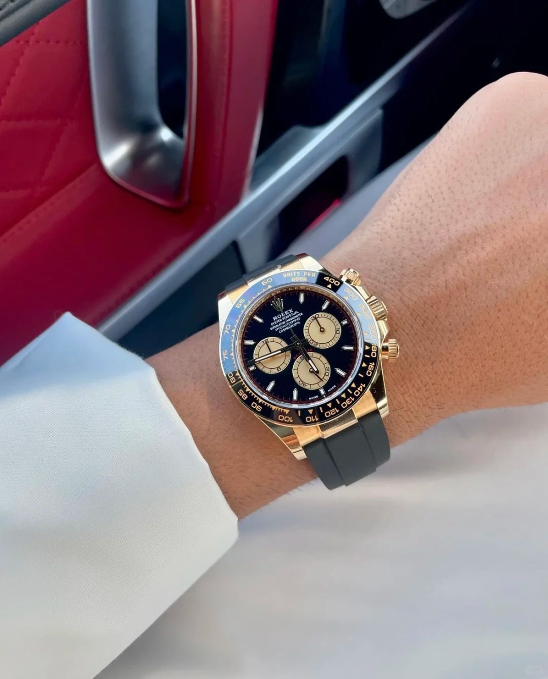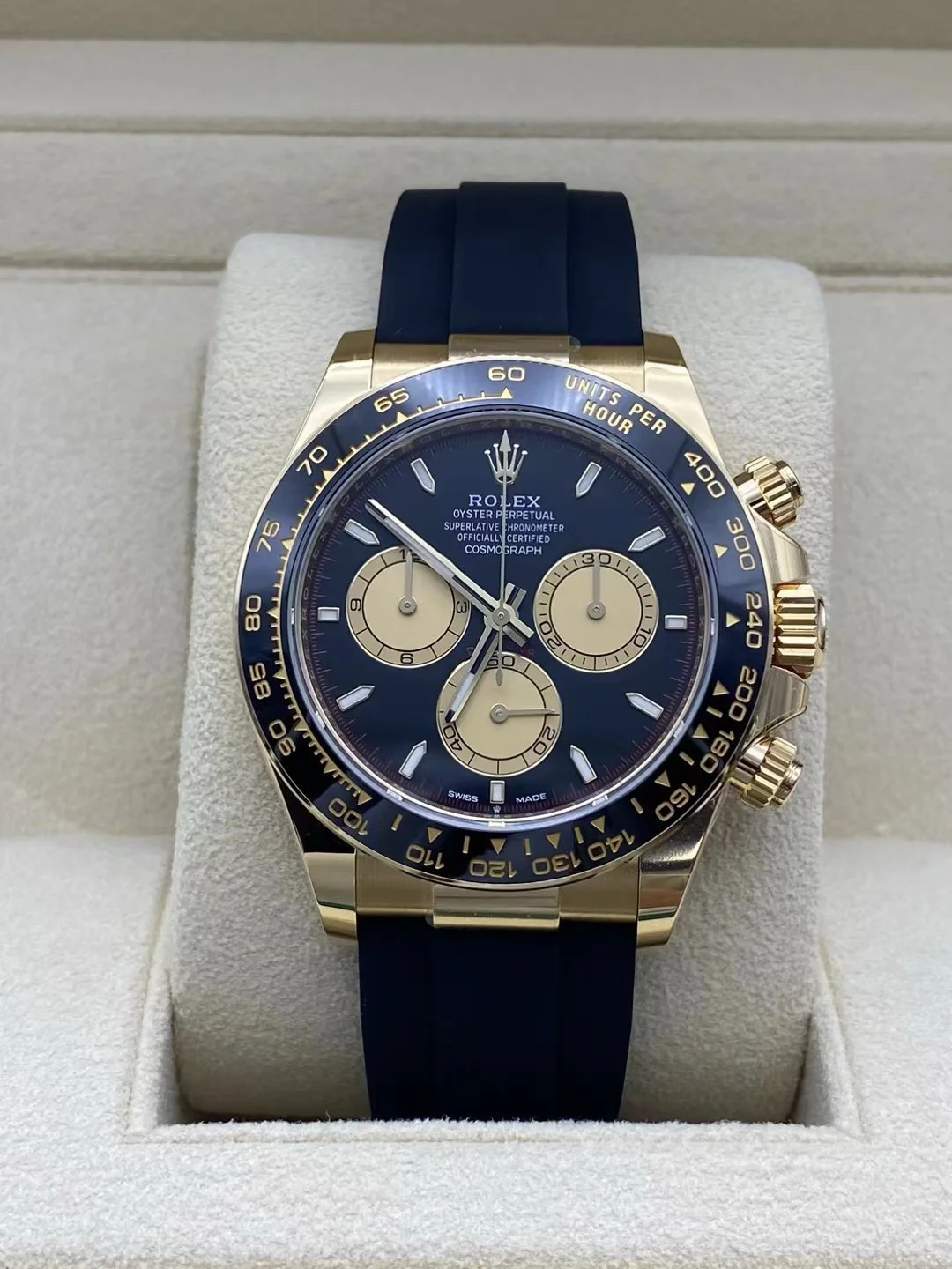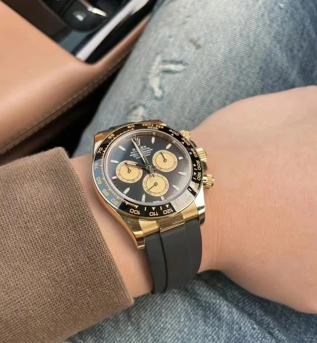 The Oyster Perpetual Cosmograph Daytona in 18 ct yellow gold with a mellow black and champagne dial and an Oysterflex strap with a black Cerachrom bezel with tachymeter. -m126518ln-0004 40mm