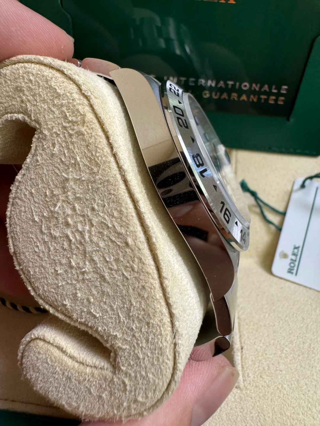 • The Oyster Perpetual Explorer II is made of Oyster steel with an Oyster bracelet and a white dial with arrow-shaped 24-hour hands and hour markers coated with Chromalight. -m226570-0001 42mm