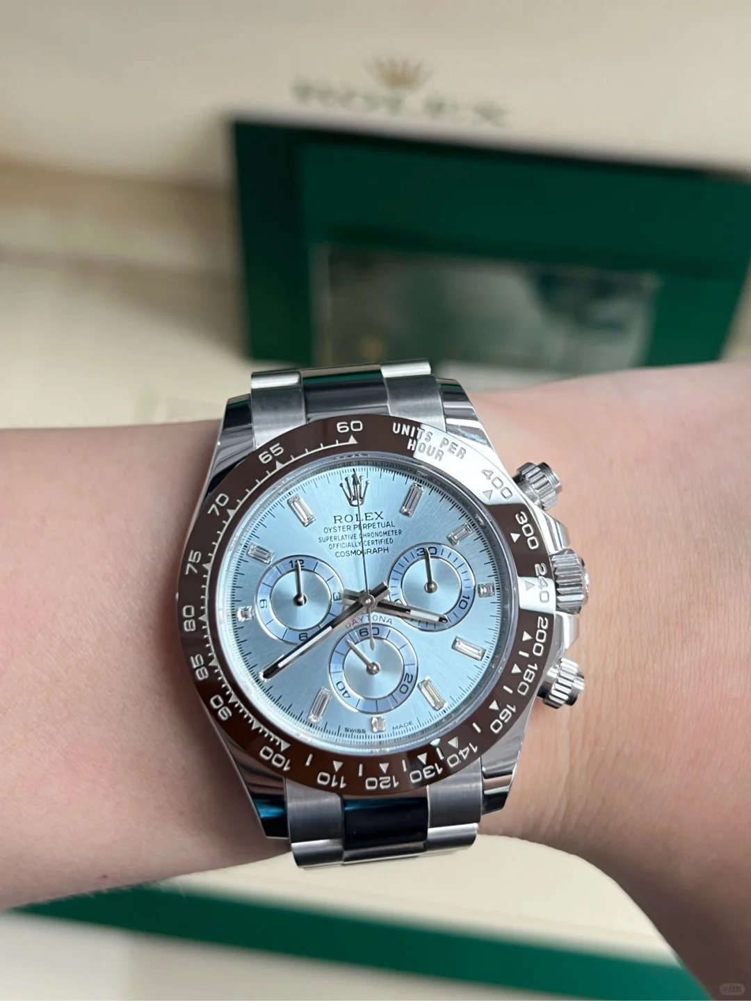 The blue watch looks beautiful on my wrist; my friends all complimented it, saying it must cost over $10,000. But I actually only spent a little over $200 on it. The quality is fantastic, and you can't tell the real price at all. The seller's 30-day return policy, 6-month free warranty, and lifetime free repair service gave me peace of mind! So far, I haven't encountered any problems using it!