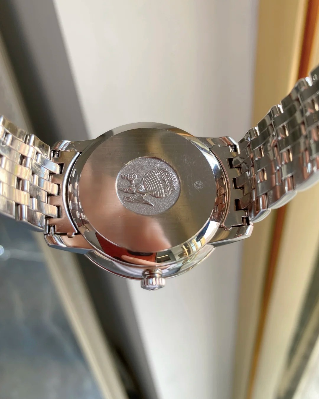 The 39.5 mm case features a stainless steel bezel and a scratch-resistant sapphire crystal. and is presented on an elegant stainless steel bracelet. At the heart of the watch is the OMEGA Co-Axial calibre 2500.