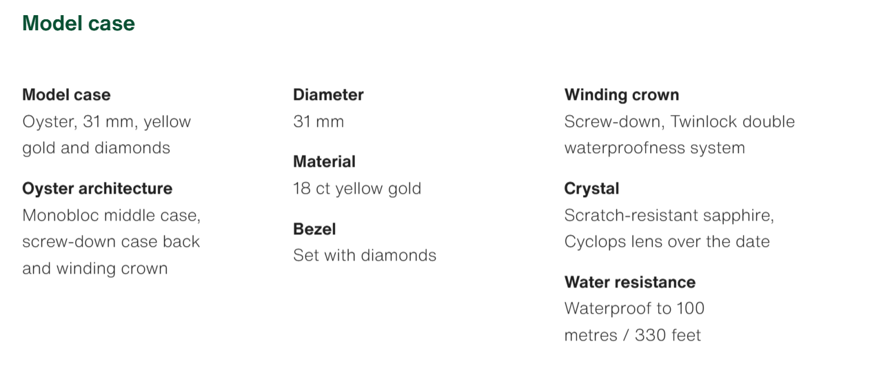 The Oyster Perpetual Datejust 31 in 18 ct yellow gold with a diamond-set olive green flower motif dial and a President bracelet. -m278288rbr-0038