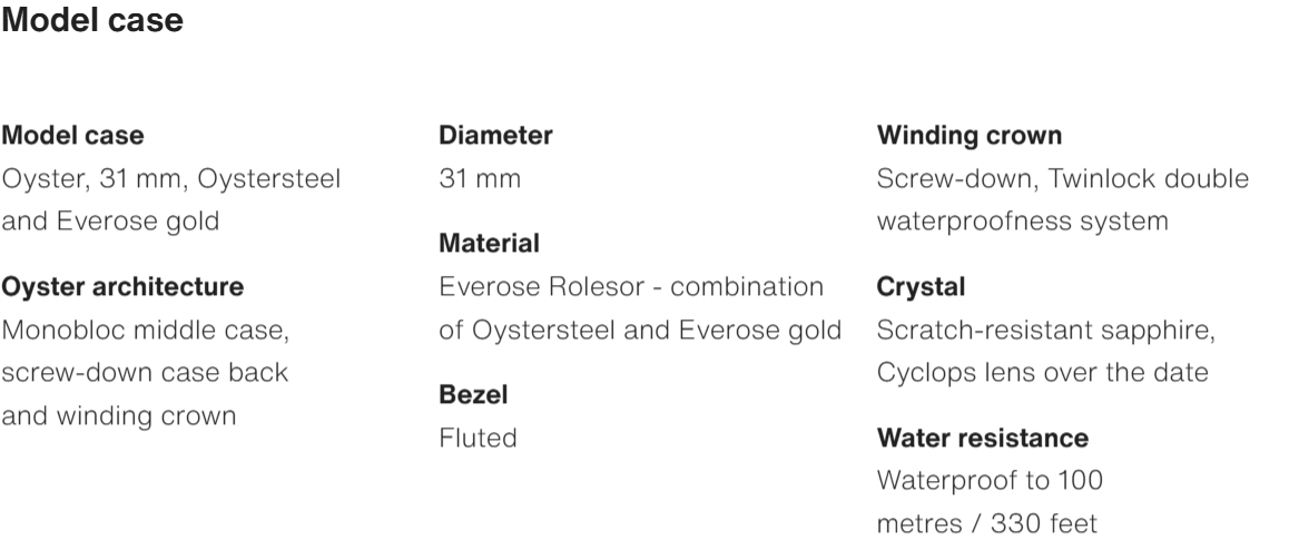 • The Oyster Perpetual Datejust 31 is available in Everose gold and Oystersteel with a white dial and Oyster bracelet. -m278271-0001