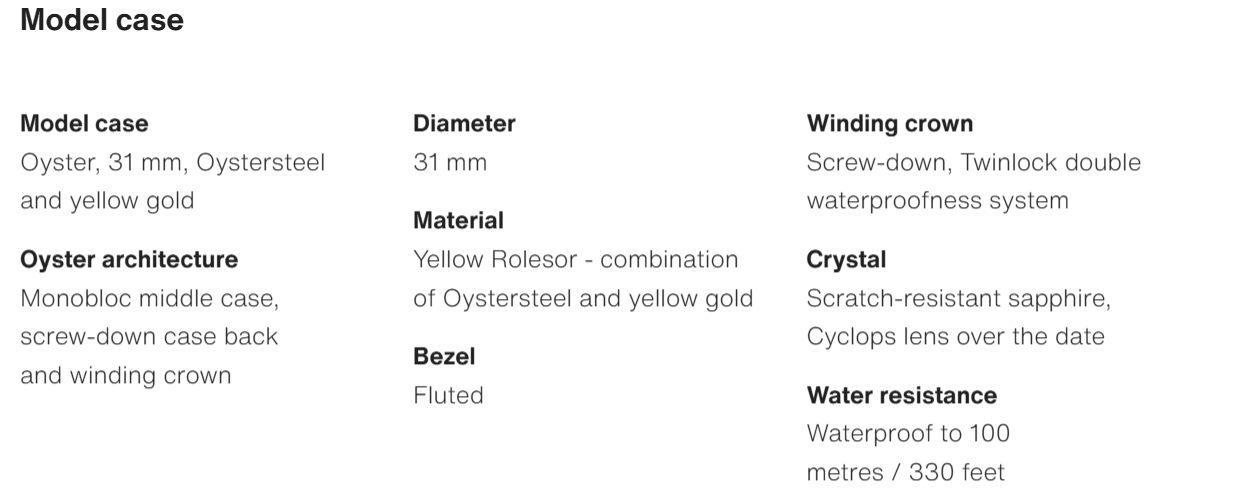 • The Oyster Perpetual Datejust 31 is available in yellow gold and Oysteel. with a diamond-set white mother-of-pearl dial and an Oyster bracelet. -m278273-0027