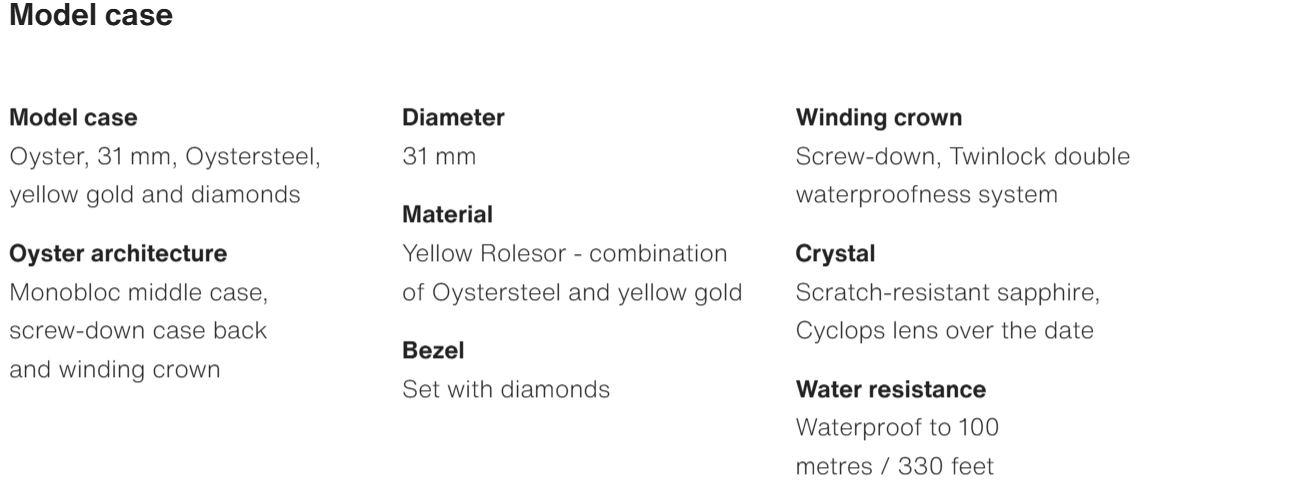 • The Oyster Perpetual Datejust 31 is available in yellow gold and Oystersteel. with a silver-toned diamond-set dial and a Jubilee bracelet. -m278383rbr-0020