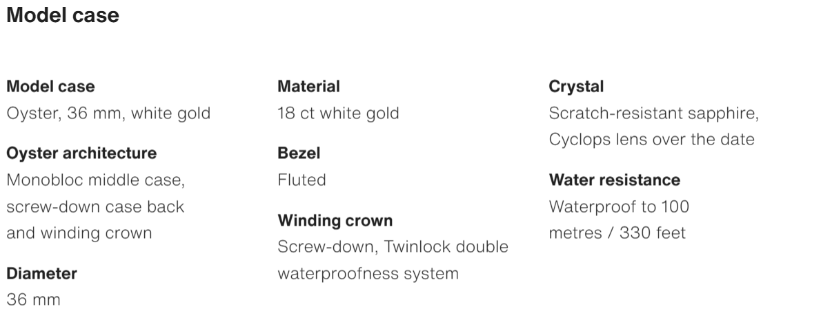 • The Oyster Perpetual Day-Date 36 is available in 18 ct white yellow gold with a diamond-set white mother-of-pearl dial. fluted bezel and President bracelet. -m128239-0065