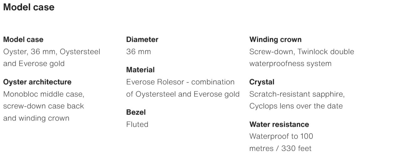 • The Oyster Perpetual Datejust 36 is available in Everose gold and Oystersteel with a white dial and a Jubilee bracelet. -m126231-0017