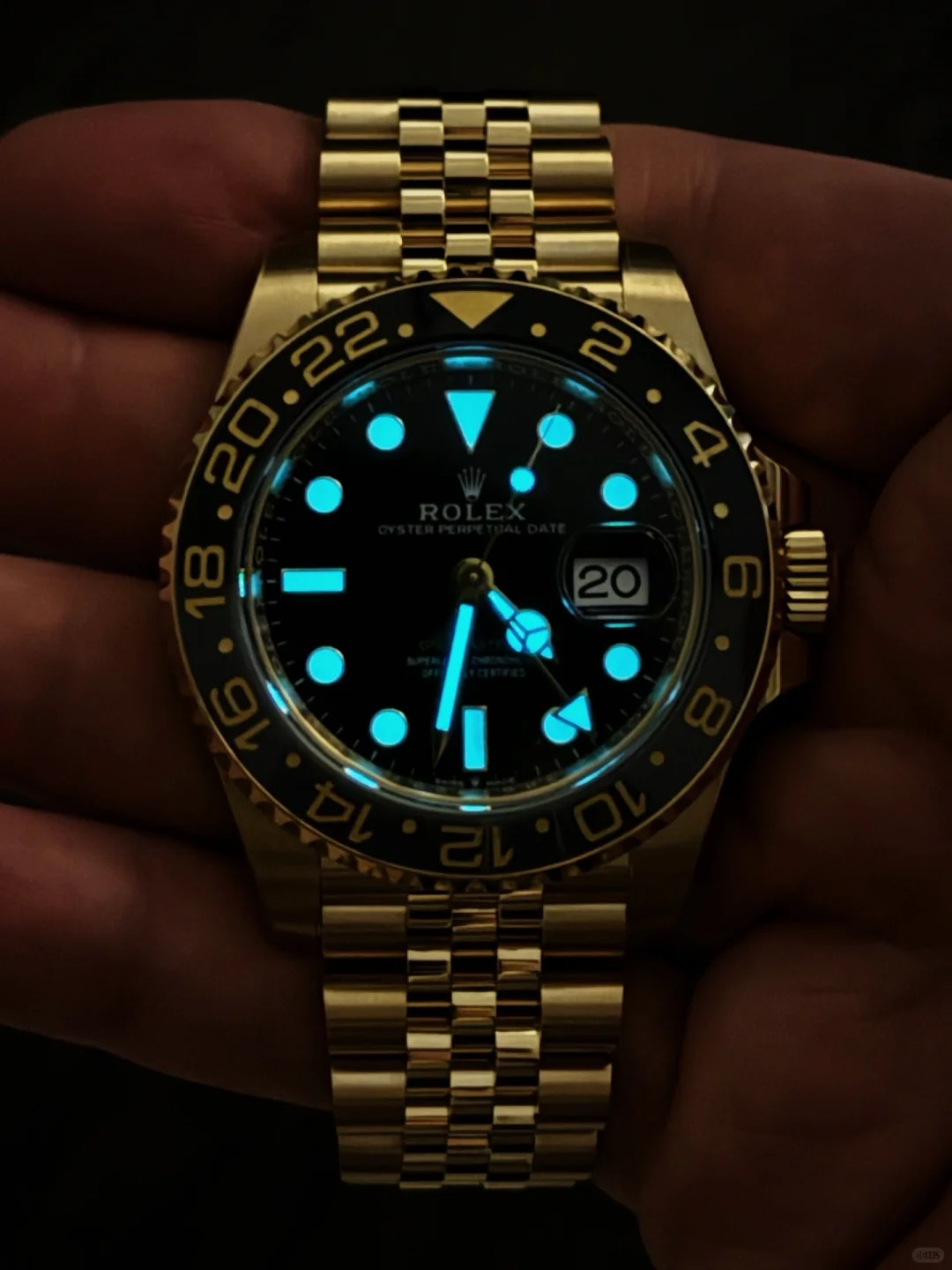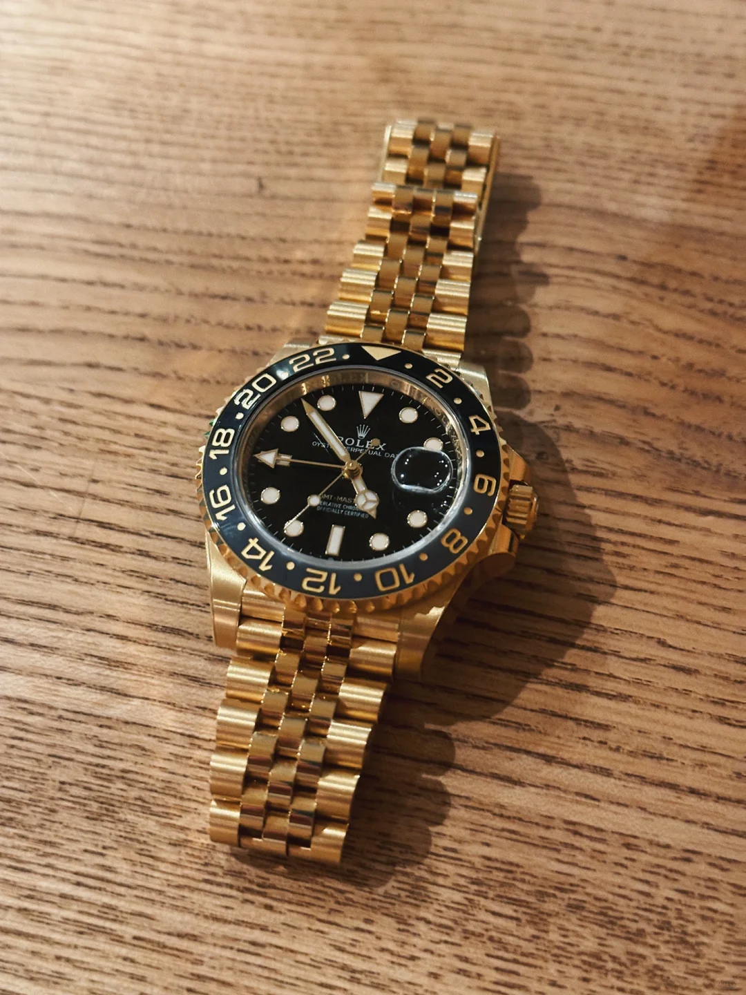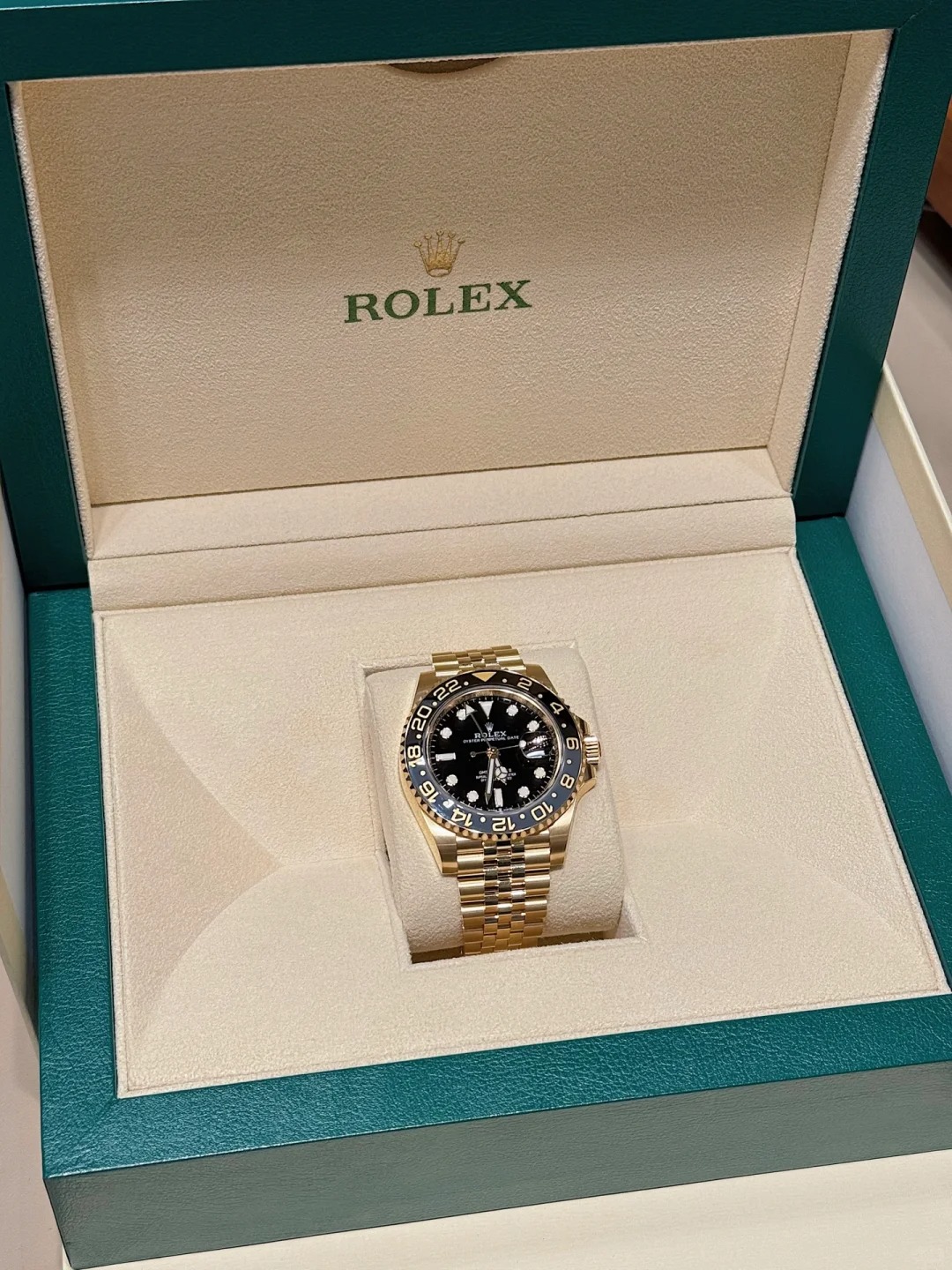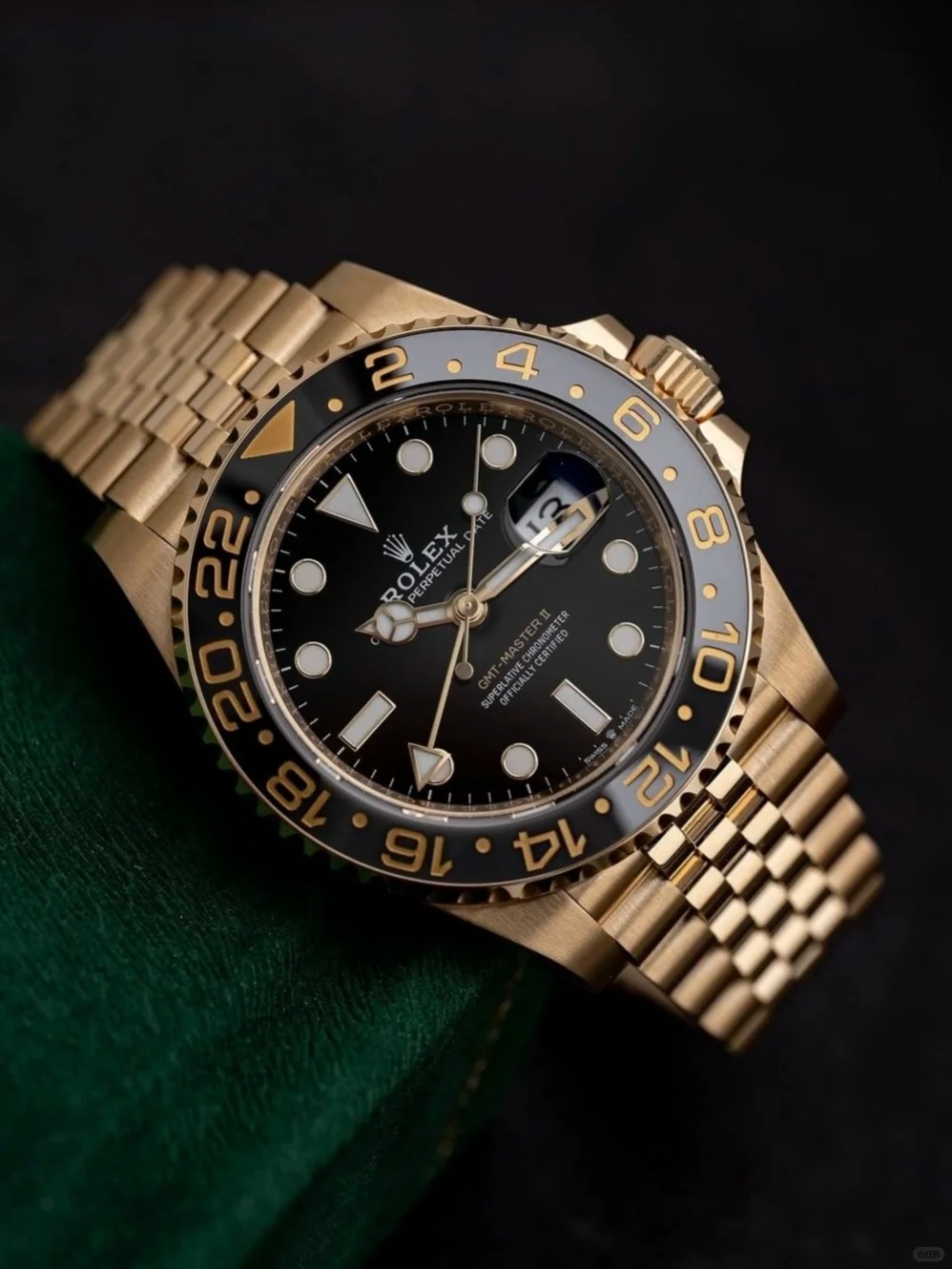 The Oyster Perpetual GMT-Master II in 18K yellow gold with a black dial and Jubilee bracelet. -m126718grnr-0001 40mm