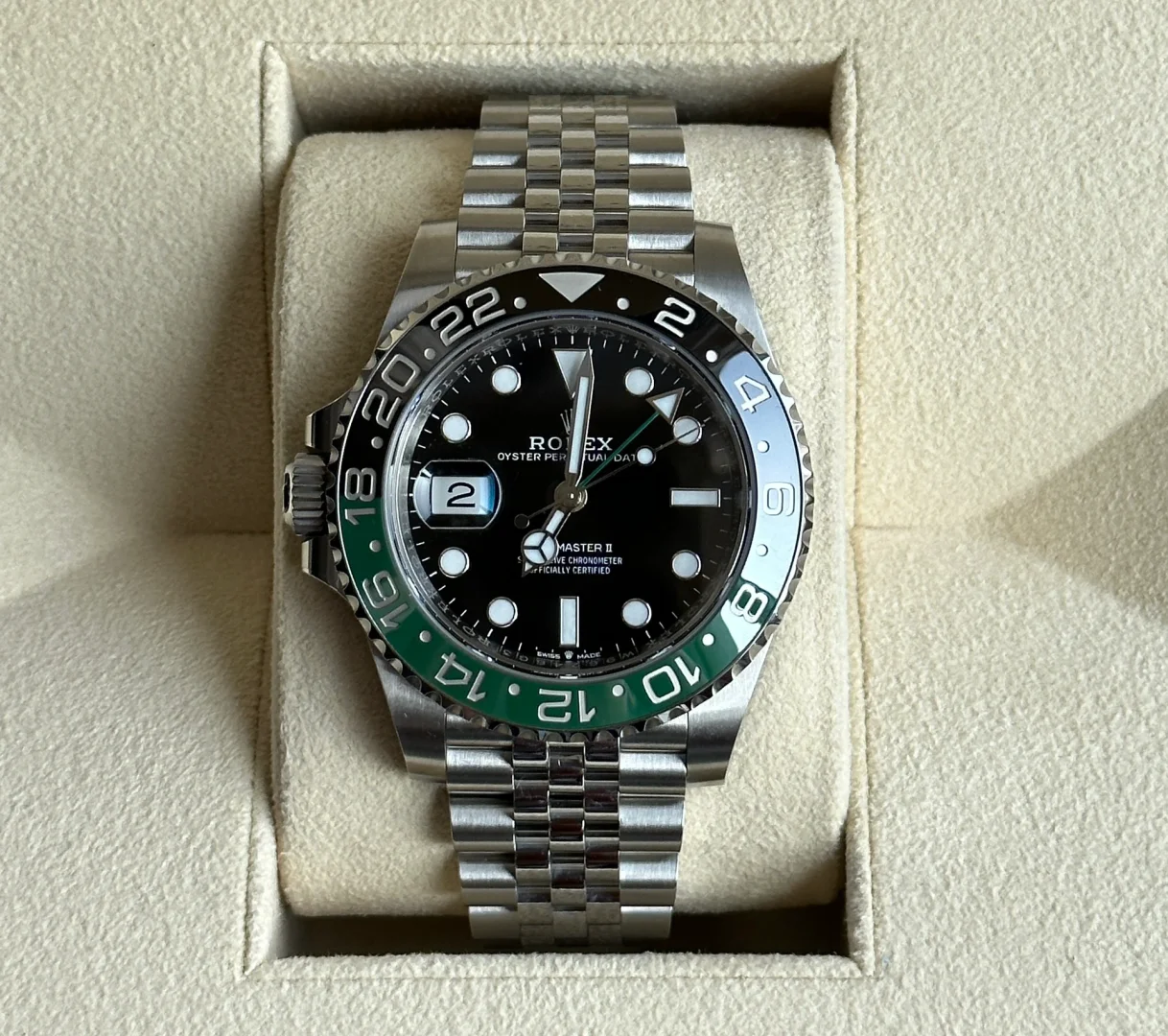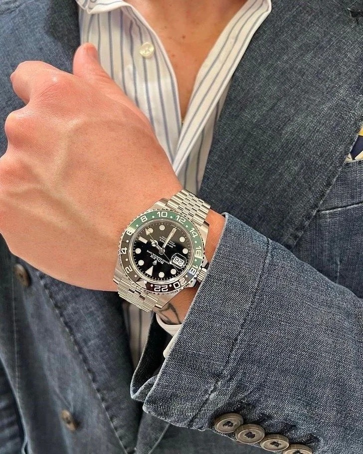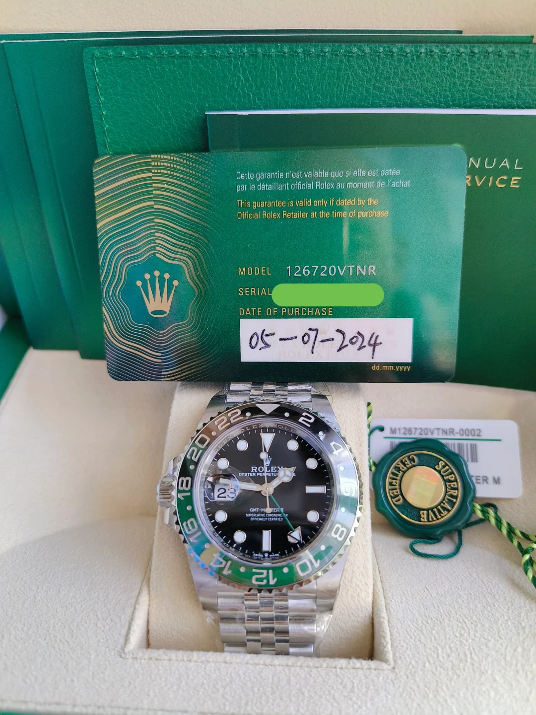The Oyster Perpetual GMT-Master II is available in Oyster steel with a black dial and a Jubilee bracelet. -m126720vtnr-0002 40mm