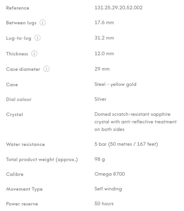 • Constellation 29 mm. Stainless steel - 18K yellow gold case and stainless steel - 18K yellow gold bracelet-131.25.29.20.52.002