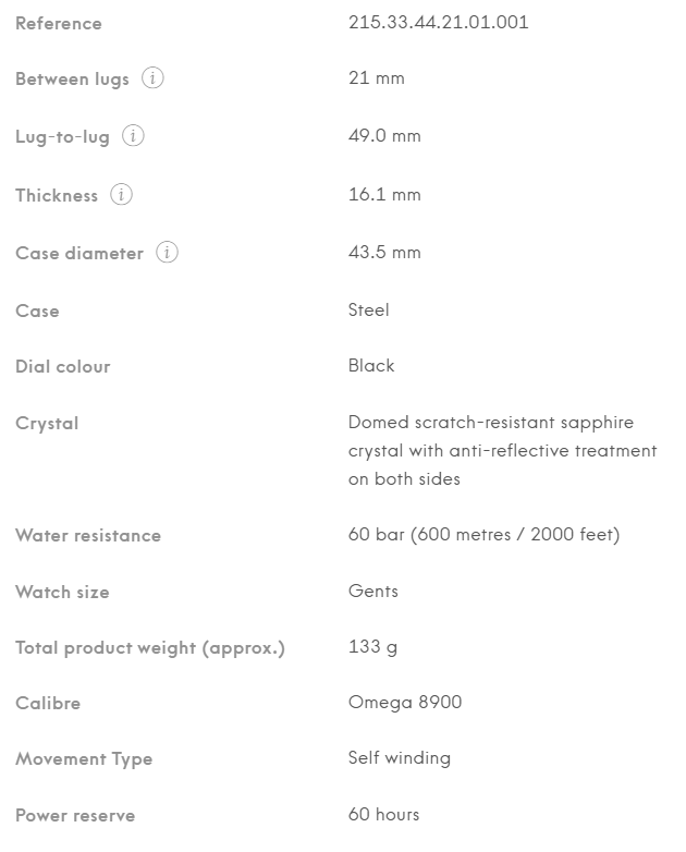 • Seamaster Planet Ocean 600m 43.5 mm. stainless steel case with rubber leather strap on inside - 215.33.44.21.01.001