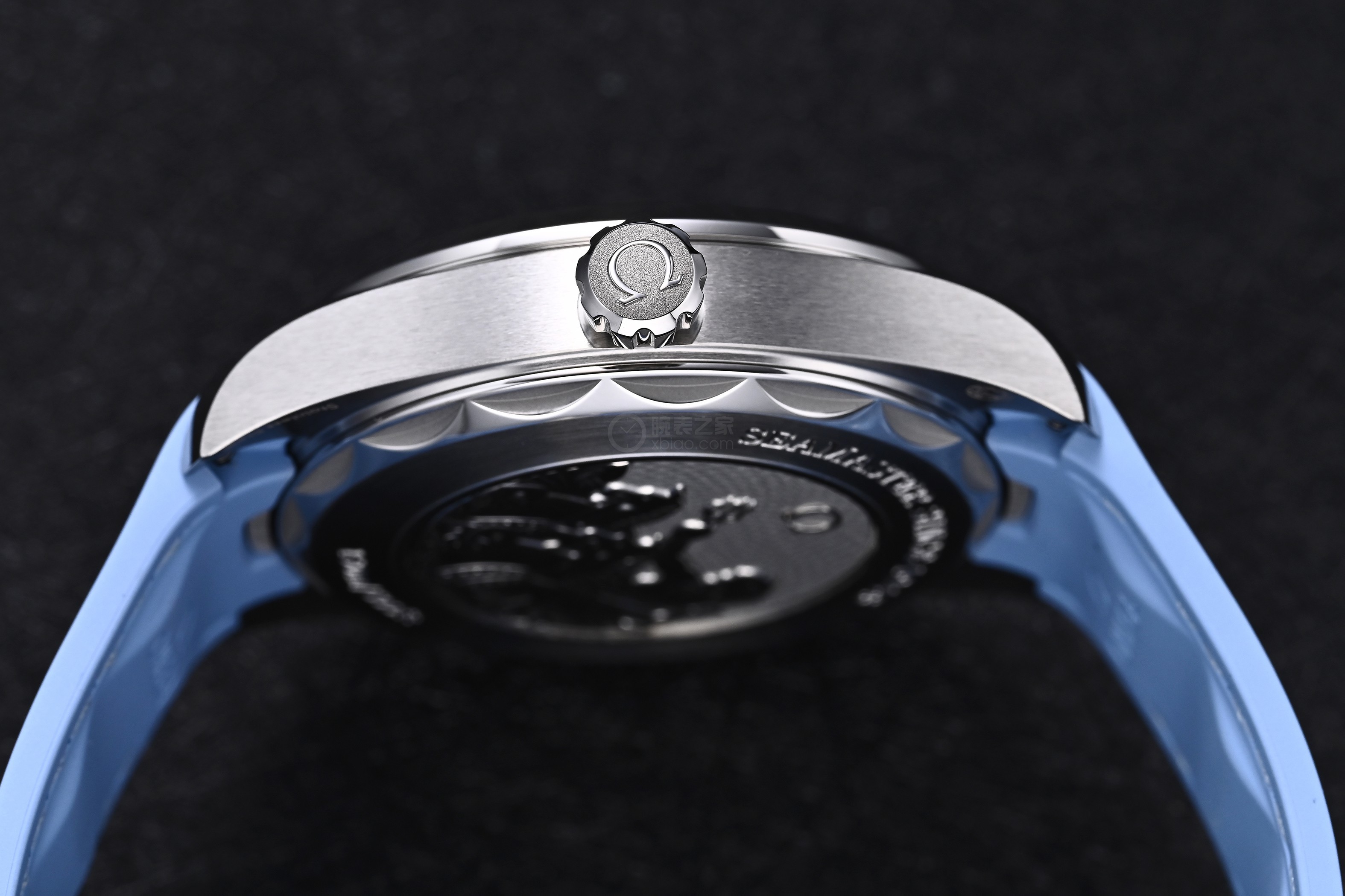 Seamaster in Summer Blue watches come with a unique and monumental case back. The Seahorse logo on the caseback depicts Poseidon. the god of the sea. driving two seahorses with a trident. one for the Seahorse logo originally designed by OMEGA in 1956. and one for today's Seahorse Logo. At the heart of the watch is the OMEGA Co-Axial Master Chronometer Calibre 8938.