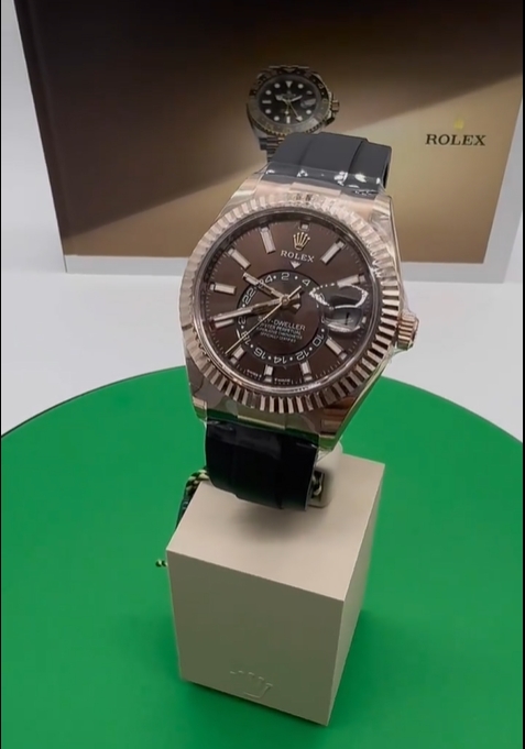 • The Oyster Perpetual Sky-Dweller in 18-carat Everose gold with a chocolate-coloured dial and an Oysterflex bracelet. -m336235-0002 42mm