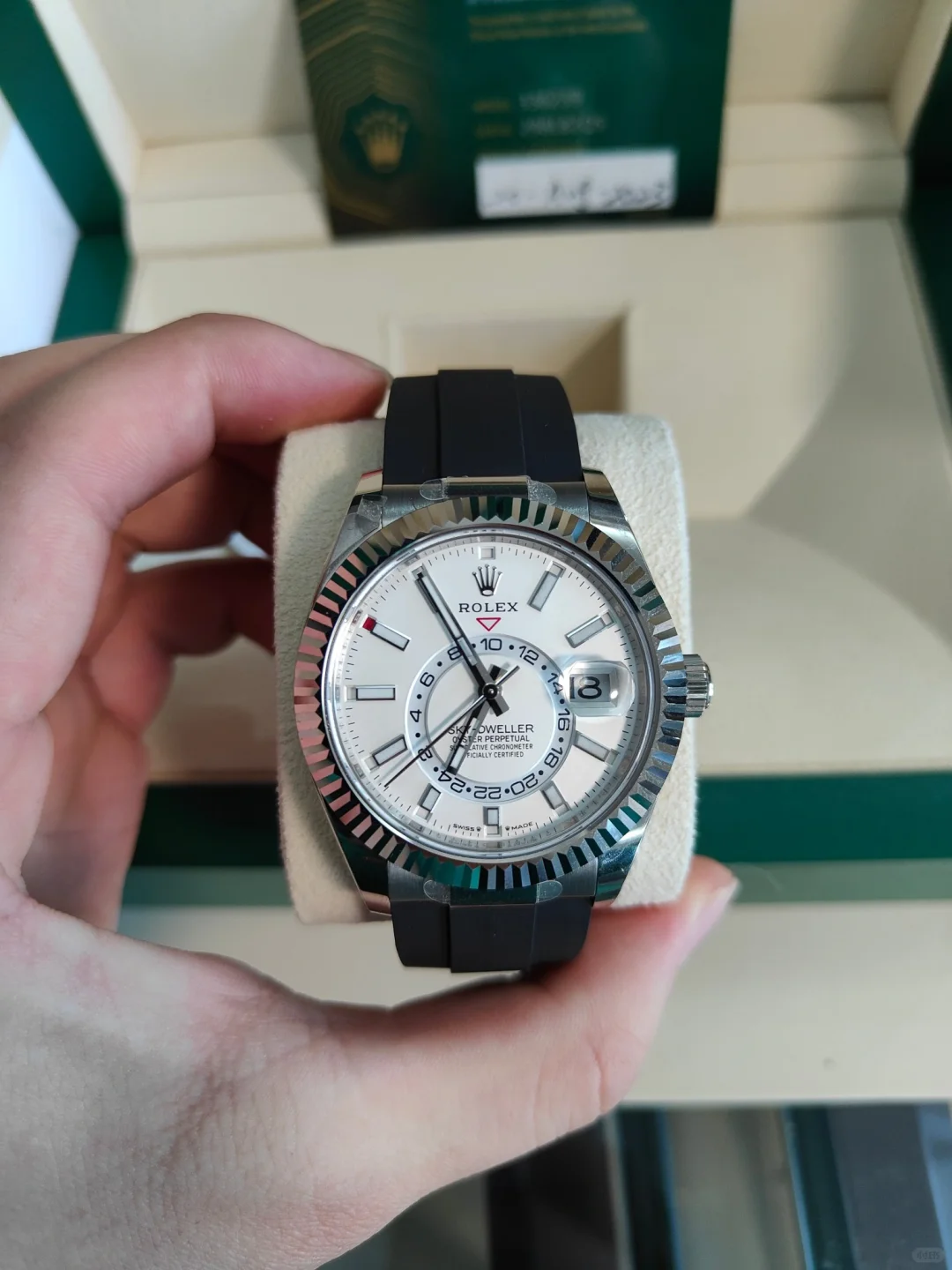 The Oyster Perpetual Sky-Dweller in 18-carat white gold with a mellow white dial and Oysterflex bracelet. -m336239-0003 42mm