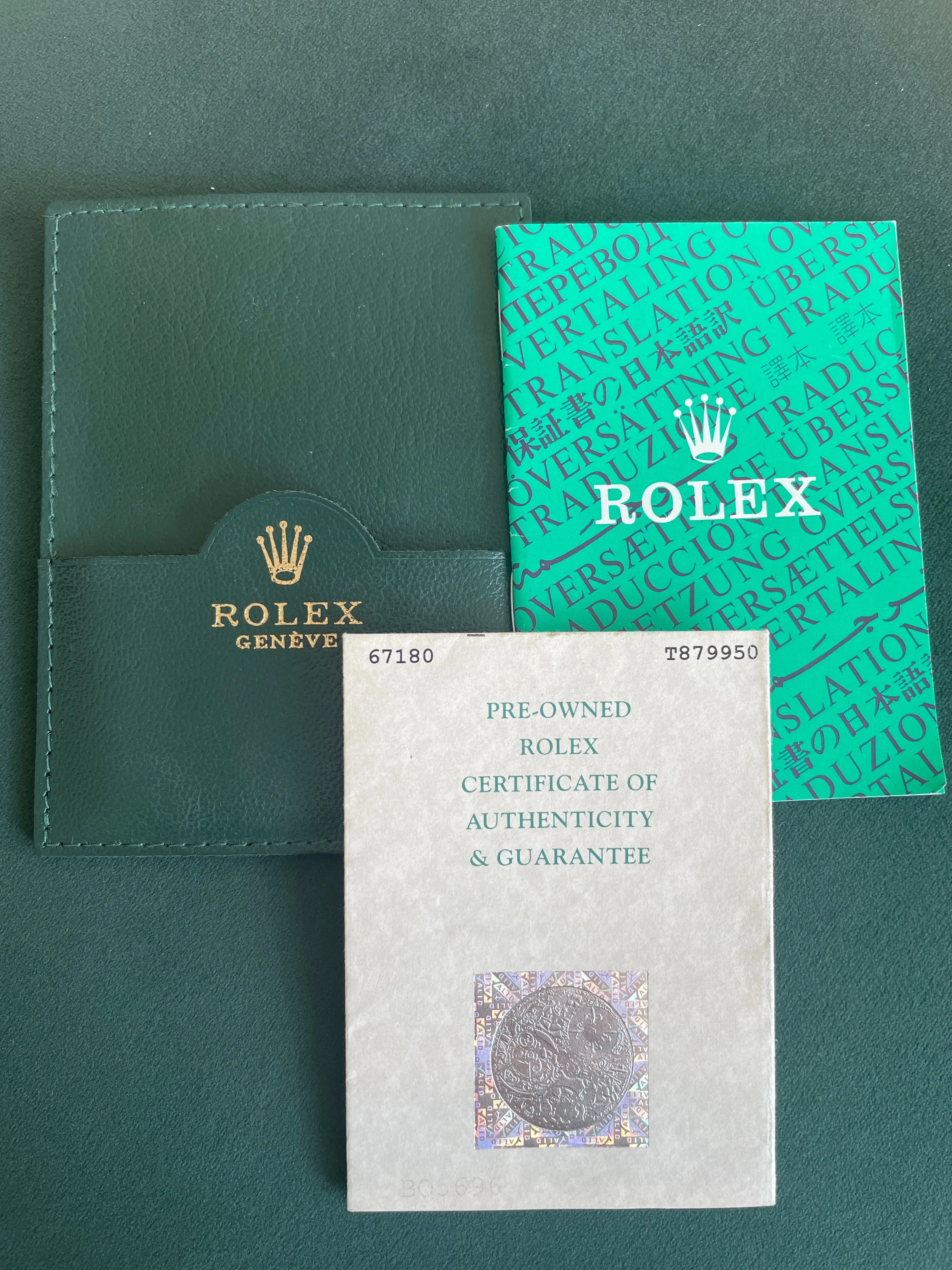 The watch is unworn and comes complete with full set of original accessories. such as watch box. warranty card dated recently. booklets and manuals.