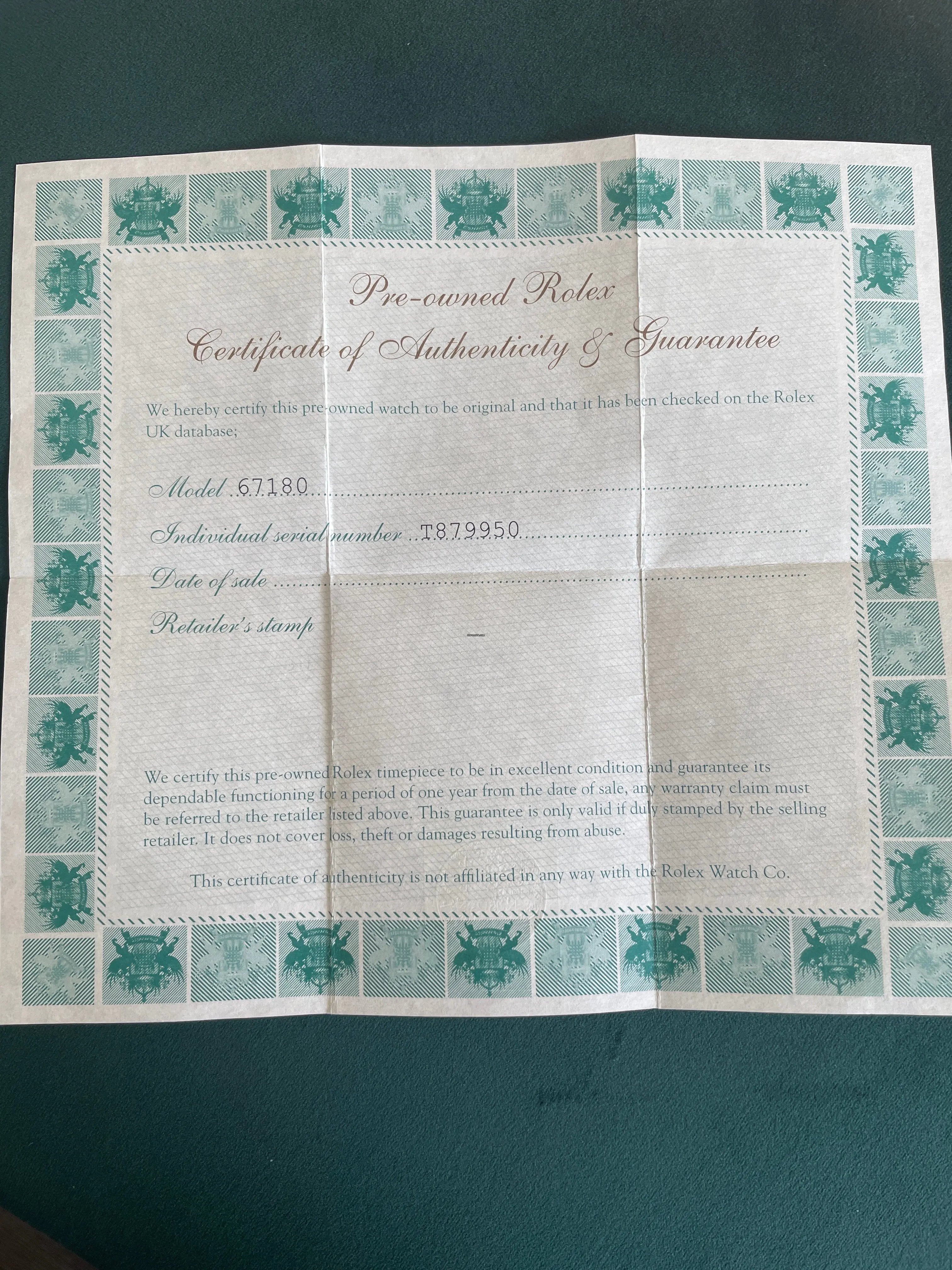 The watch is unworn and comes complete with full set of original accessories. such as watch box. warranty card dated recently. booklets and manuals.