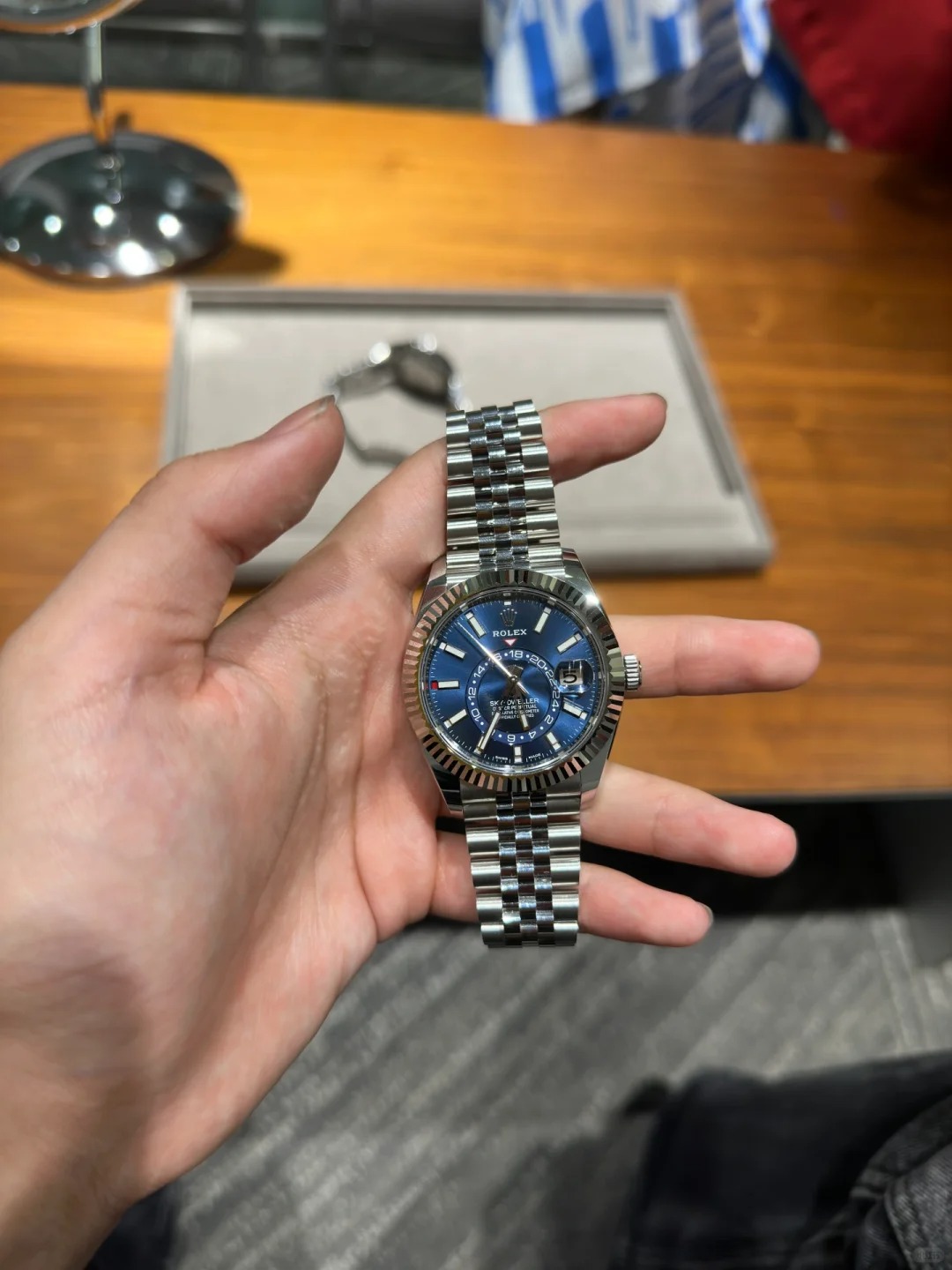 The blue watch looks beautiful on my wrist; my friends all complimented it, saying it must cost over $10,000. But I actually only spent a little over $200 on it. The quality is fantastic, and you can't tell the real price at all. The seller's 30-day return policy, 6-month free warranty, and lifetime free repair service gave me peace of mind! So far, I haven't encountered any problems using it!