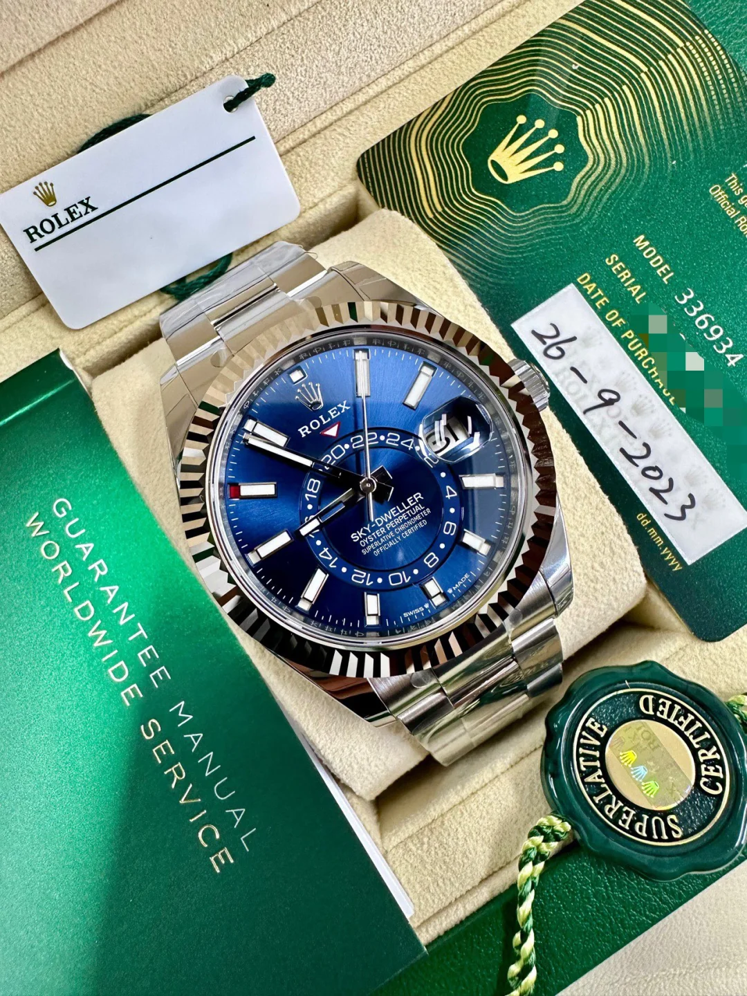 The Oyster Perpetual Sky-Dweller is available in white gold and Oystersteel with a bright blue dial and an Oyster bracelet. -m336934-0005 42mm