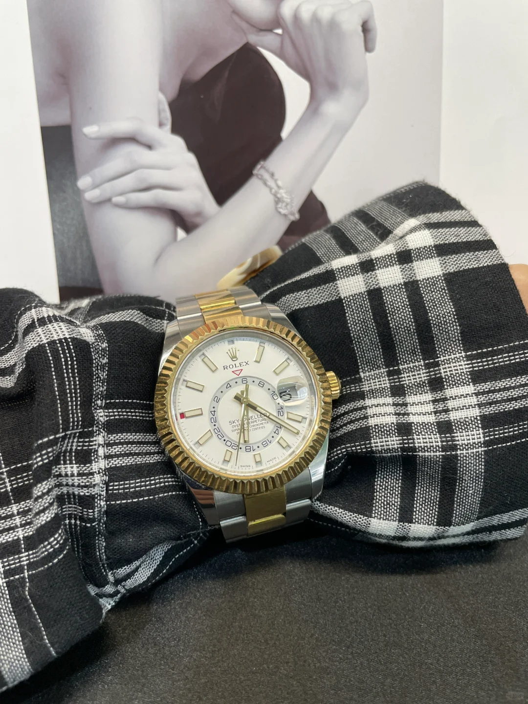 The Oyster Perpetual Sky-Dweller is available in yellow gold and Oystersteel with a mellow white dial and an Oyster bracelet. -m336933-0005 42mm