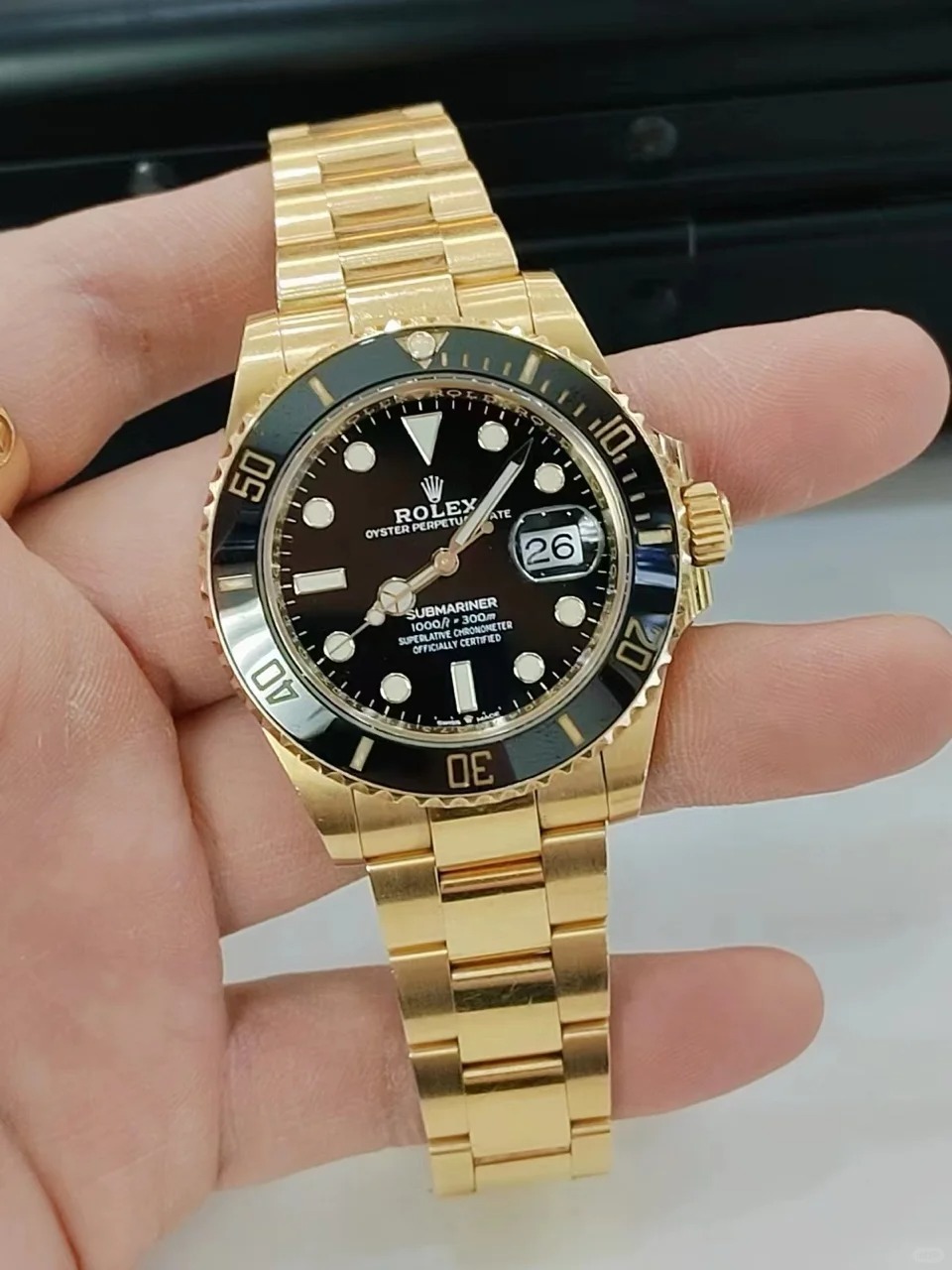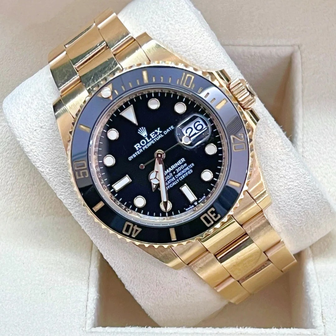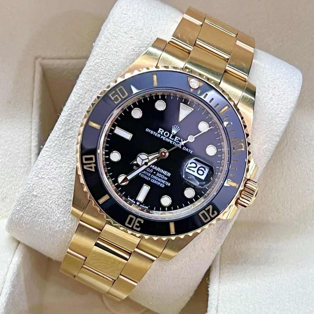 The Oyster Perpetual Submariner Date in 18 ct yellow gold with black Cerachrom insert in ceramic. black dial and oversized luminescent hour markers. -m126618ln-0002 41mm