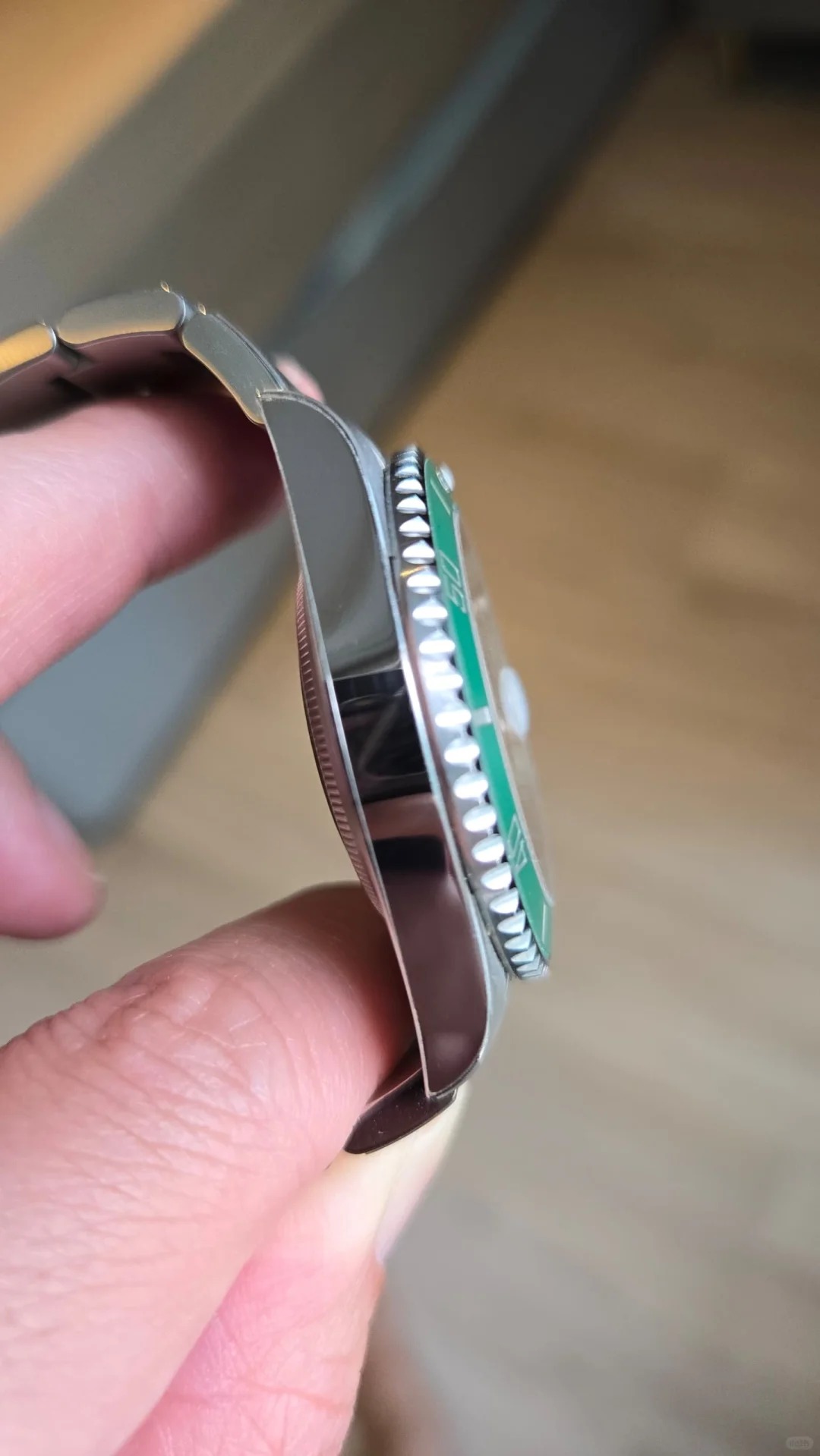 The Oyster Perpetual Submariner Date in Oyster steel with a green Cerachrom insert in ceramic. a black dial and oversized luminescent hour markers. -116610LV 41mm