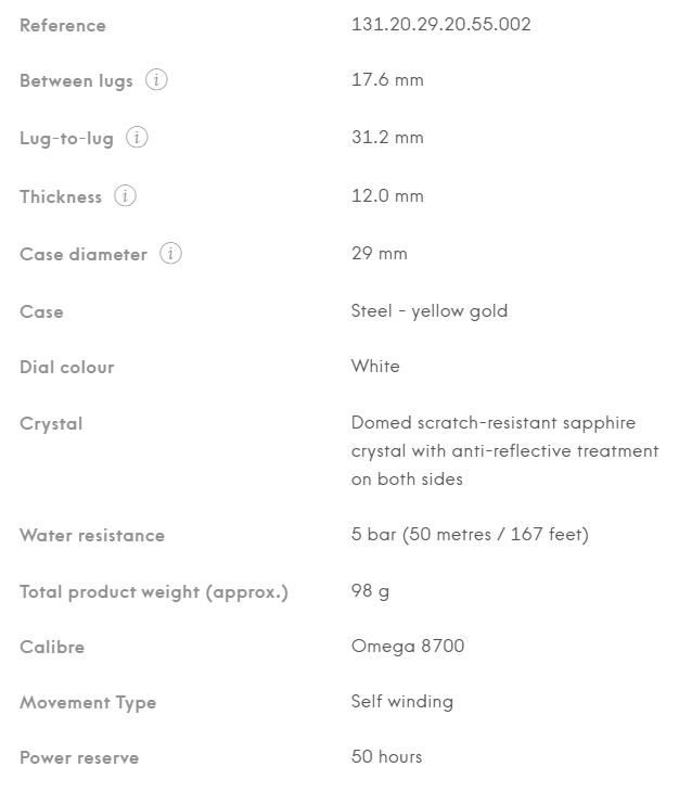 • Constellation 29 mm. stainless steel - 18K yellow gold case and 131.20.29.20.55.002 yellow gold bracelet - 131.20.29.20.55.002
