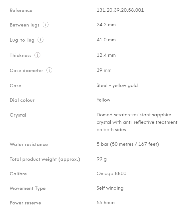 • Constellation 39 mm. Stainless steel - 18K yellow gold case and 131.20.39.20.58.001 stainless steel - 18K yellow gold