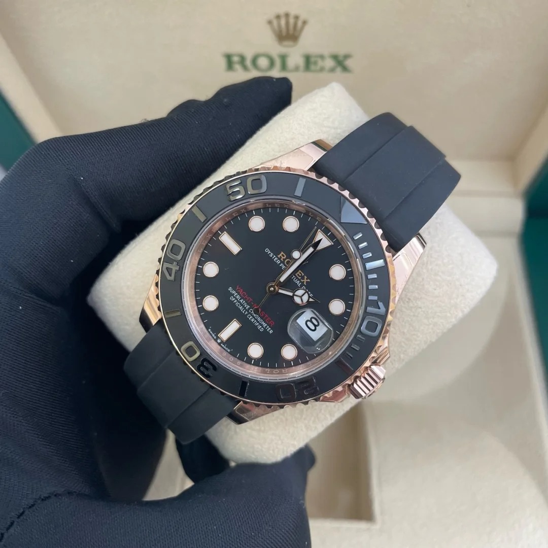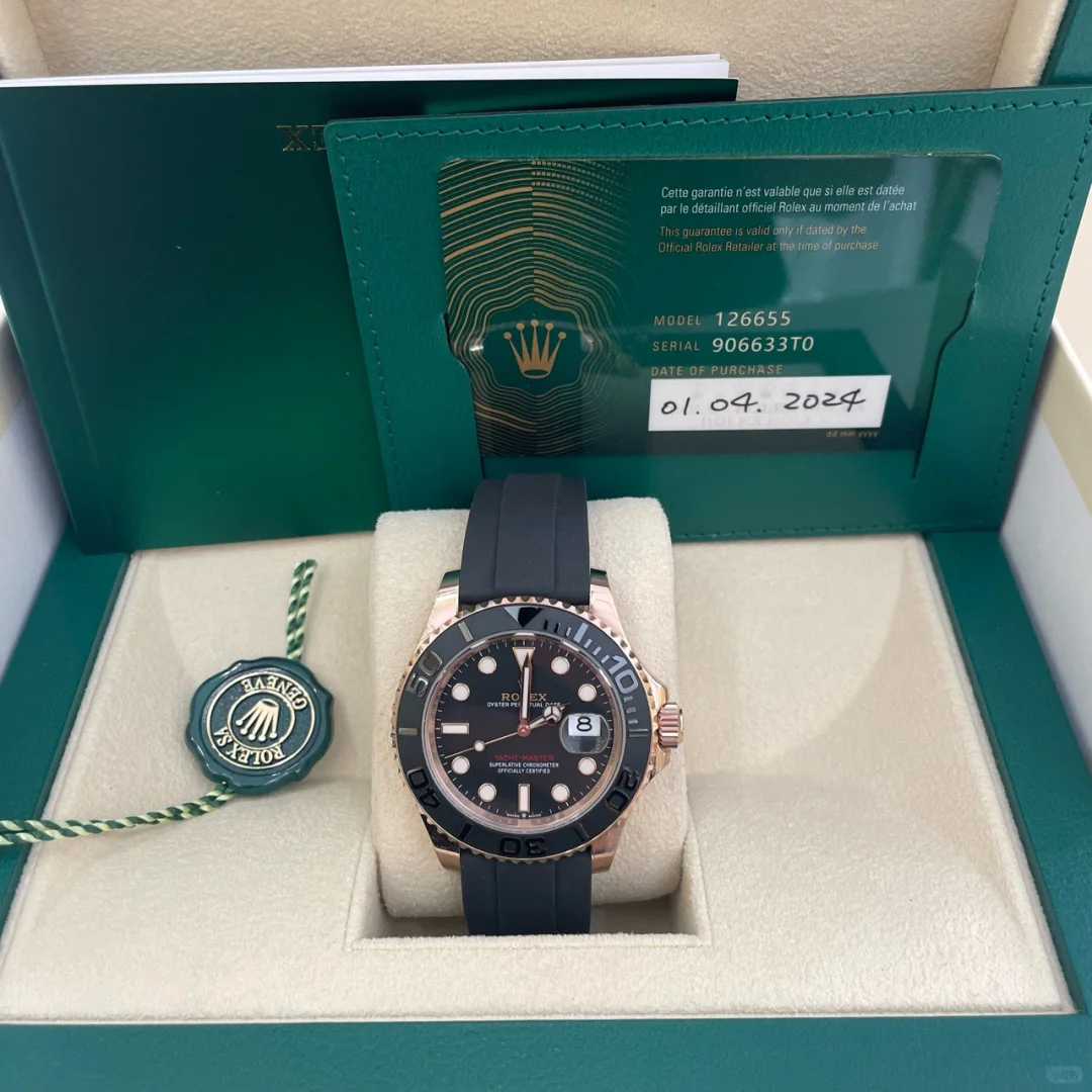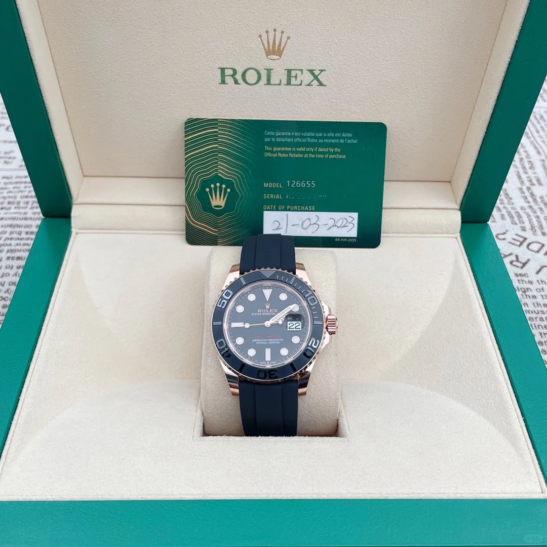 The Oyster Perpetual Yacht-Master 40 in 18 ct Everose gold with an Oysterflex strap. -m126655-0002