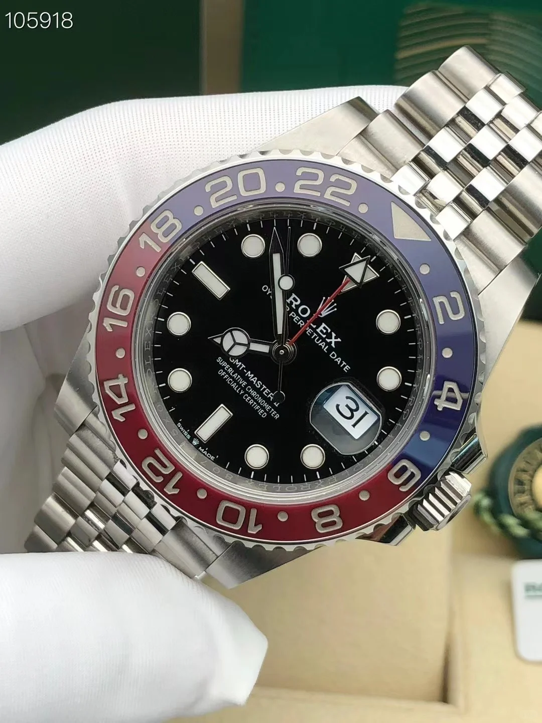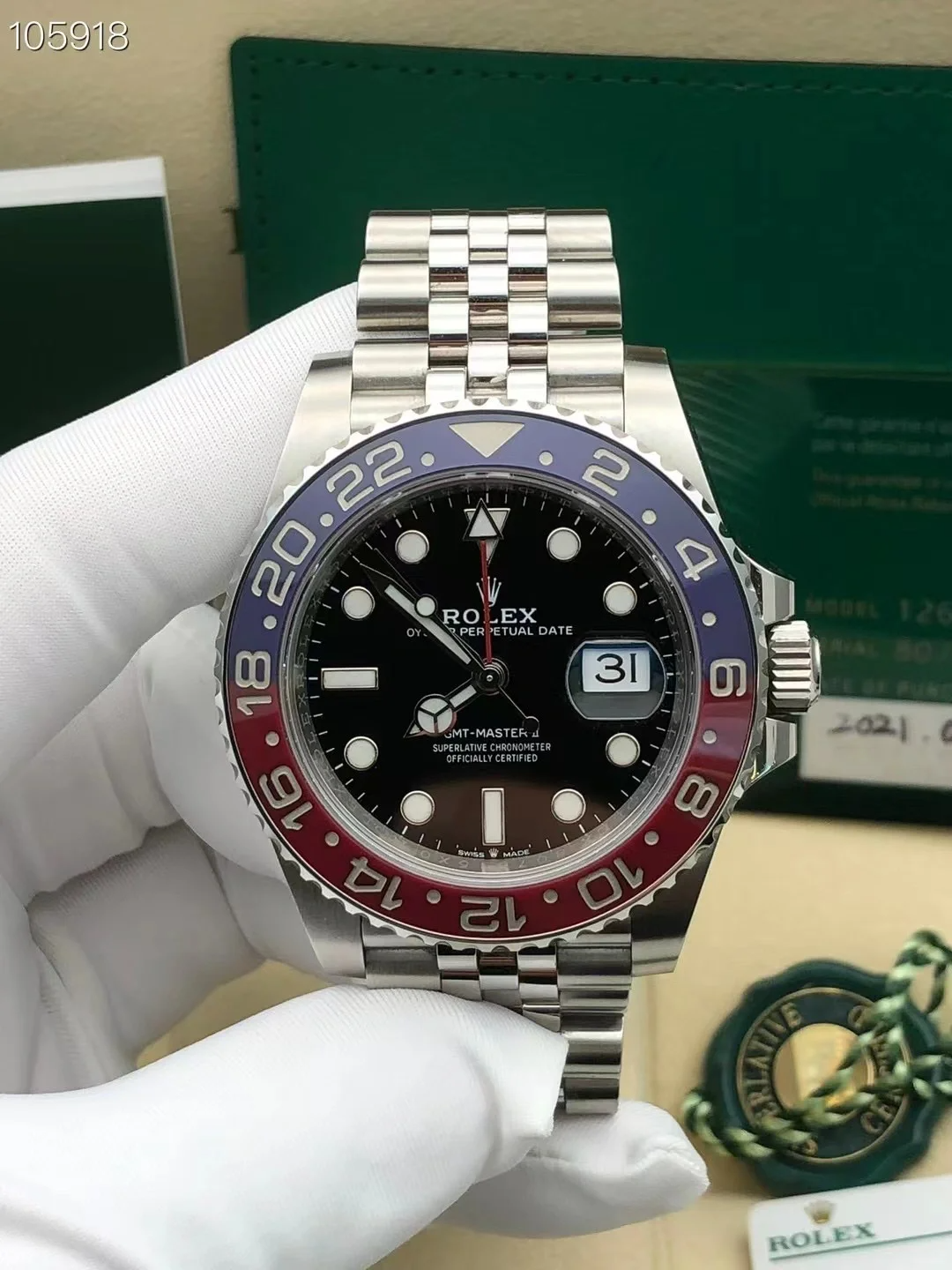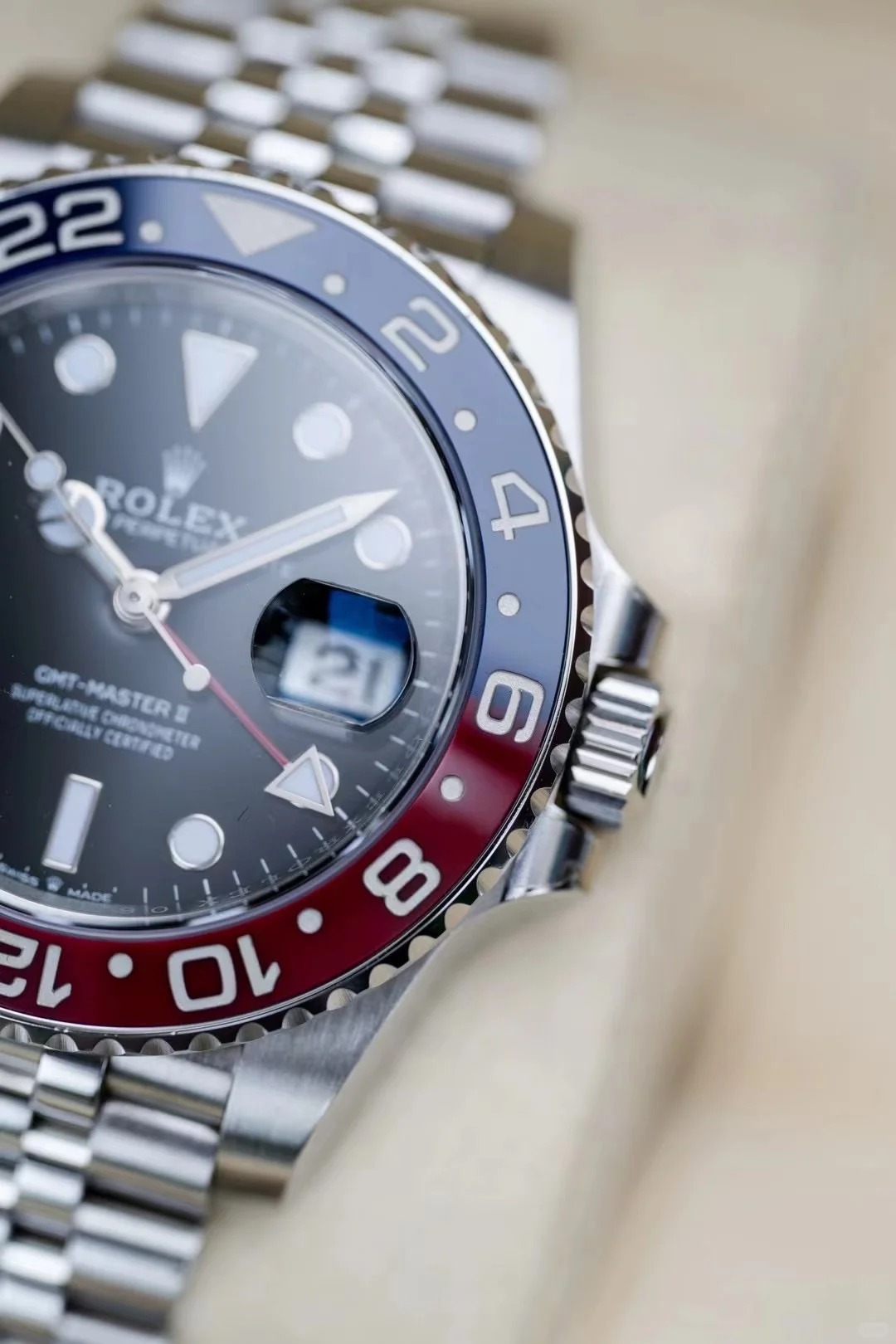 The Oyster Perpetual GMT-Master II is available in Oyster steel with a black dial and a Jubilee bracelet. -m126710blro-0001 40mm