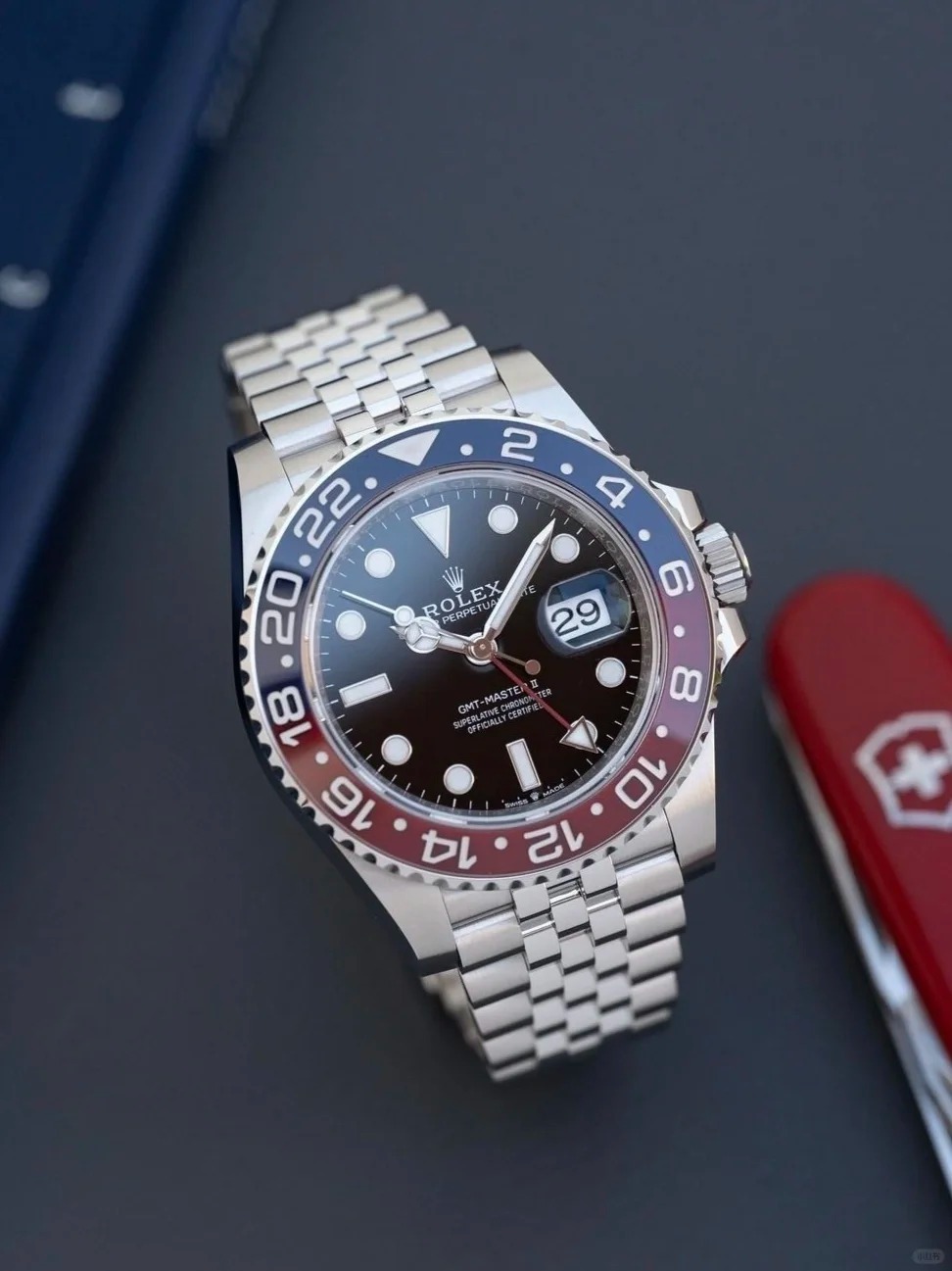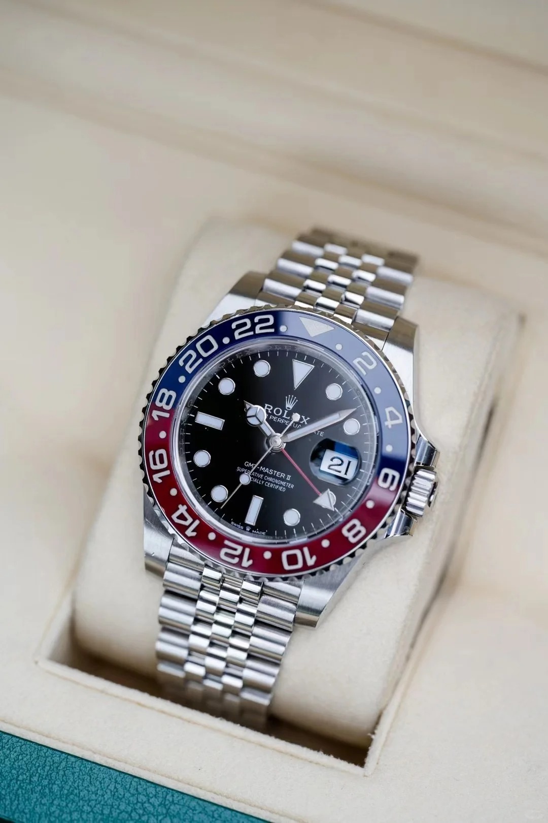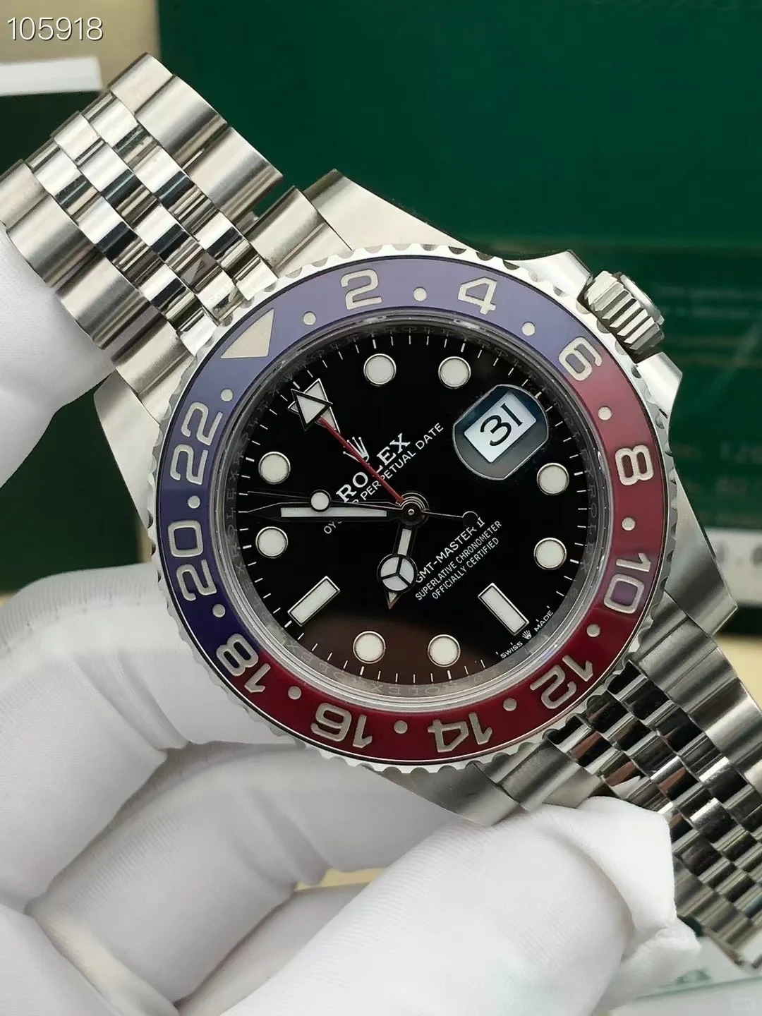The Oyster Perpetual GMT-Master II is available in Oyster steel with a black dial and a Jubilee bracelet. -m126710blro-0001 40mm