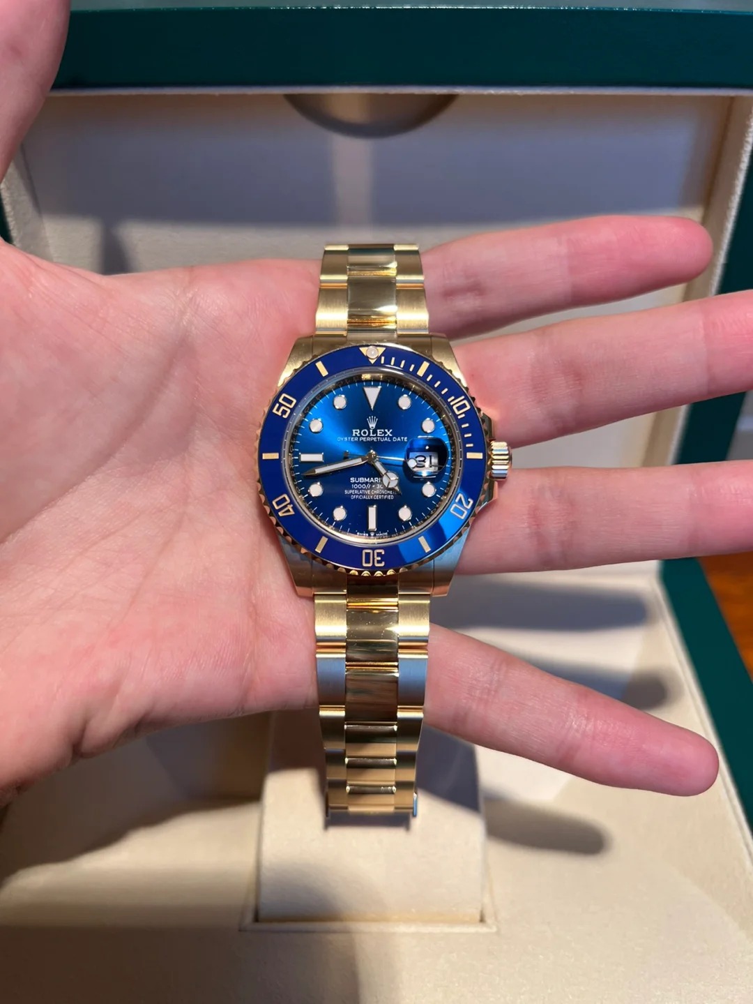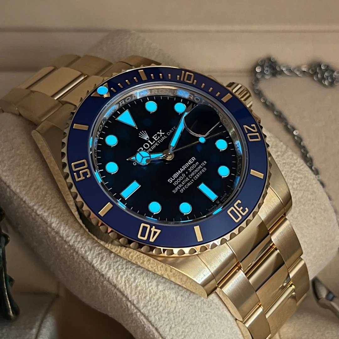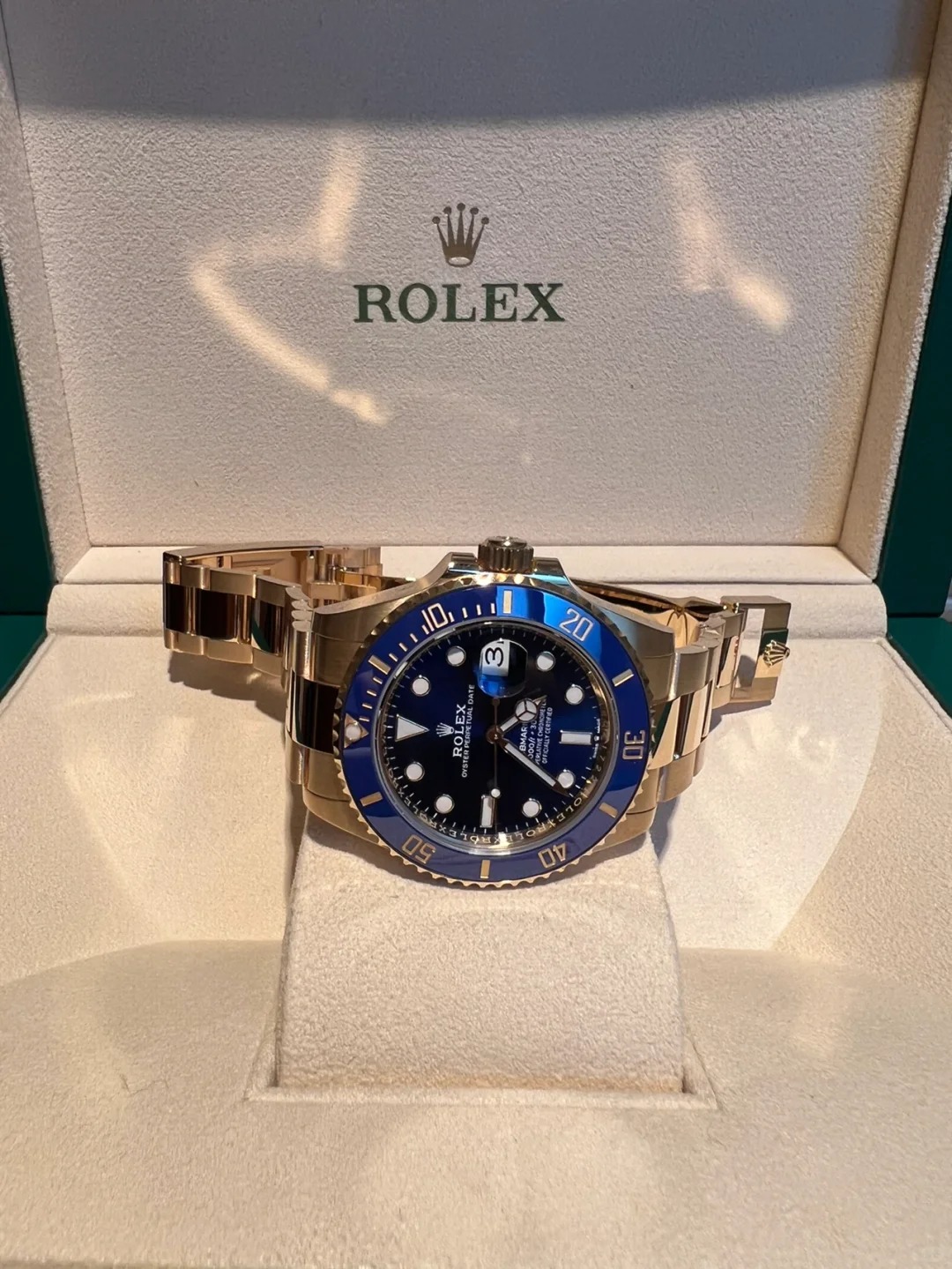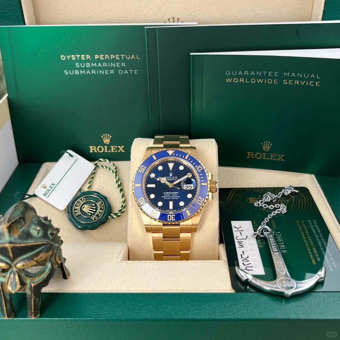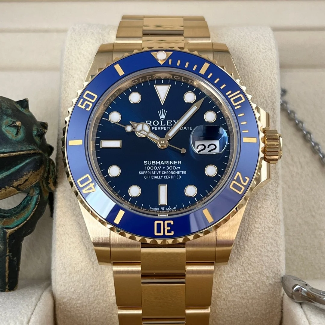 The Oyster Perpetual Submariner Date in 18 ct yellow gold with a blue Cerachrom insert in ceramic. a royal blue dial and oversized luminescent hour markers. -m126618lb-0002 41mm