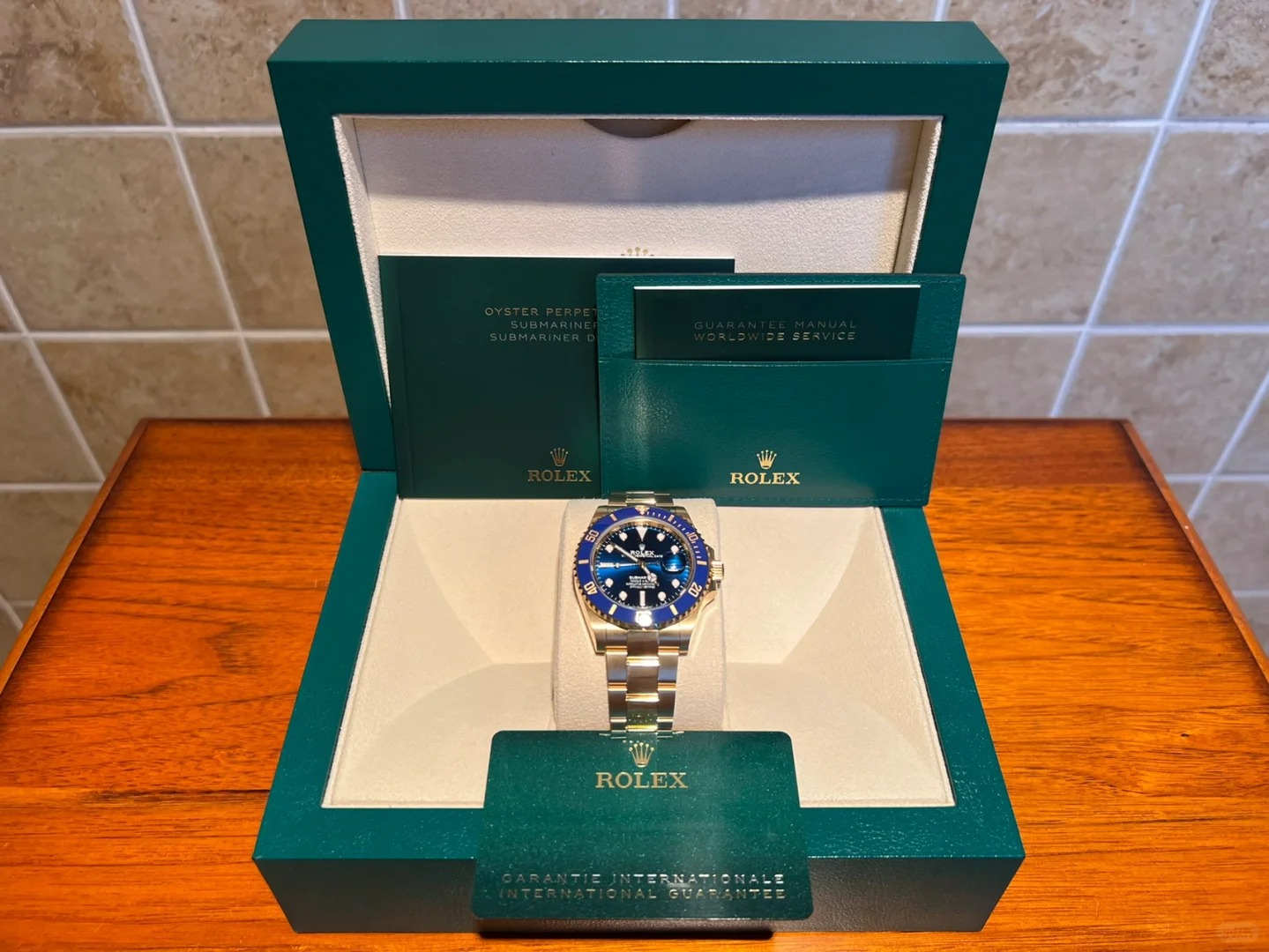 The watch is unworn and comes complete with full set of original accessories. such as watch box. warranty card dated recently. booklets and manuals.